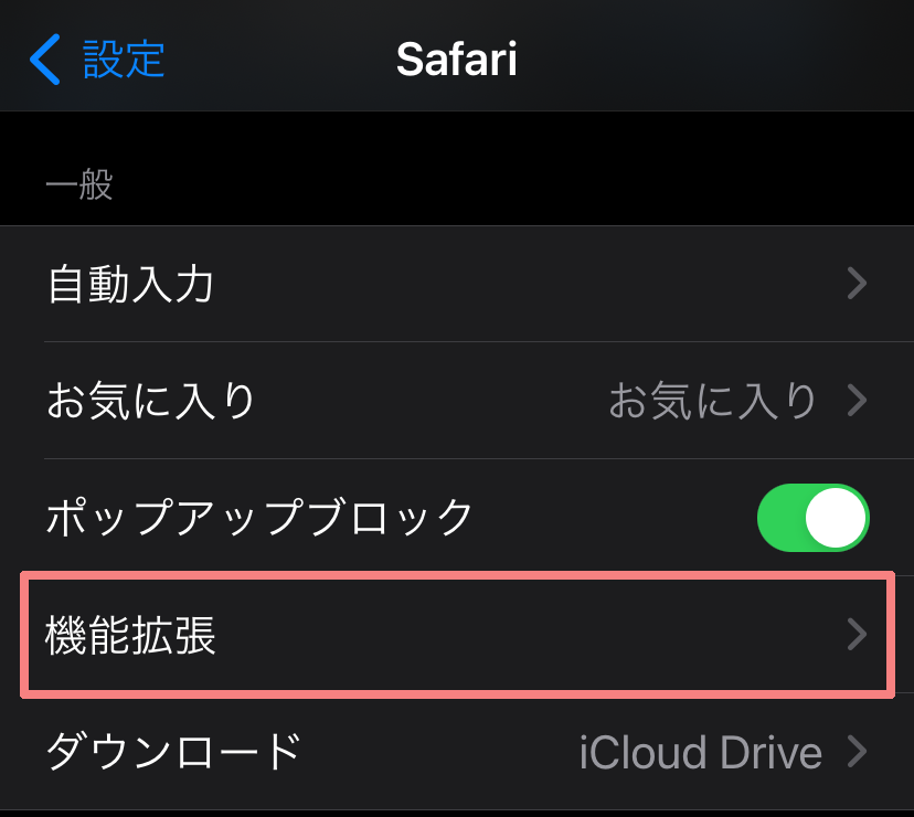 再度iPhoneの「設定」アプリから「Safari」を開きます(画像省略)