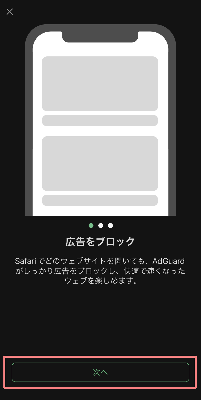 広告ブロッカーアプリはさまざまなものがありますが、ここでは無料でも使用可能なAdGuardを使用します