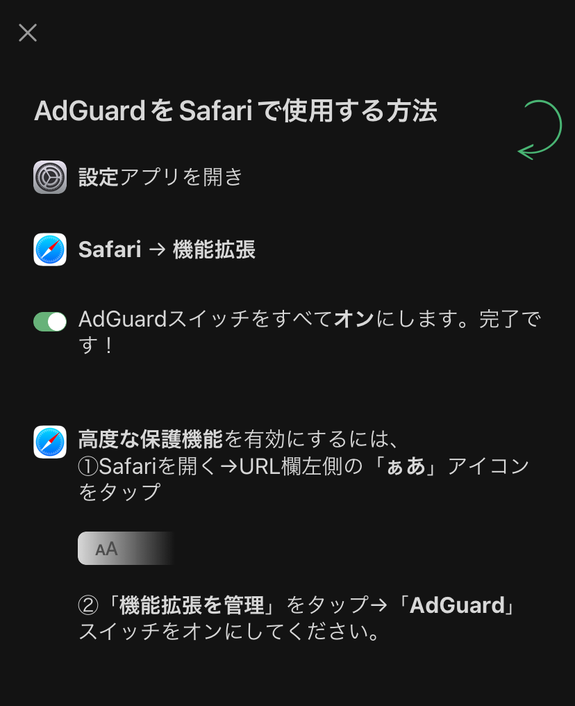 2.機能拡張アプリ AdGuard の機能有効化