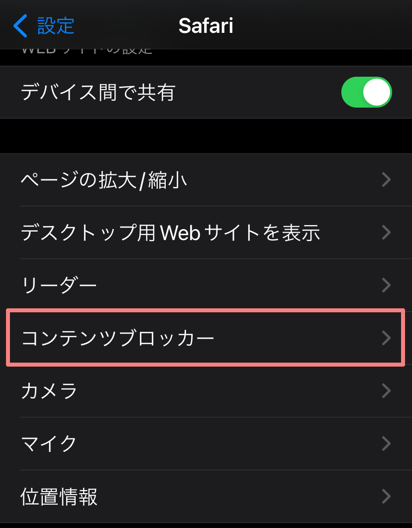 【重要】Safari設定の下の方にスクロールし「コンテンツブロッカー」をタップします