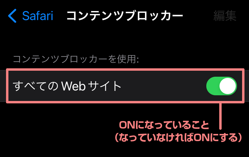 【重要】「すべてのWebサイト」で「ON」になっていることを確認します