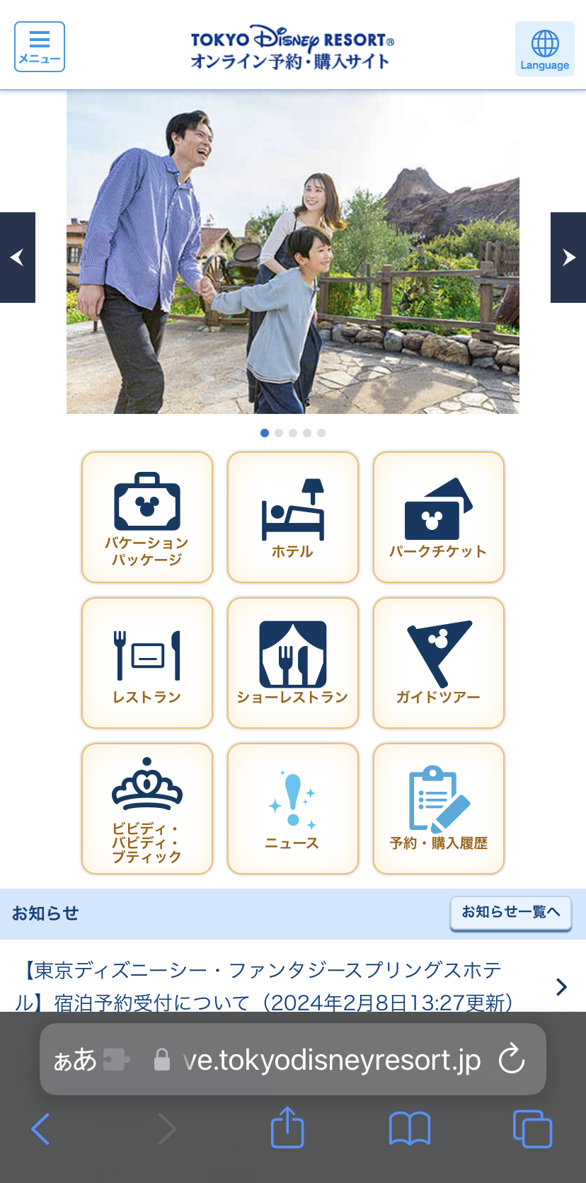 Safariで「オンライン予約・購入サイト」を開きます