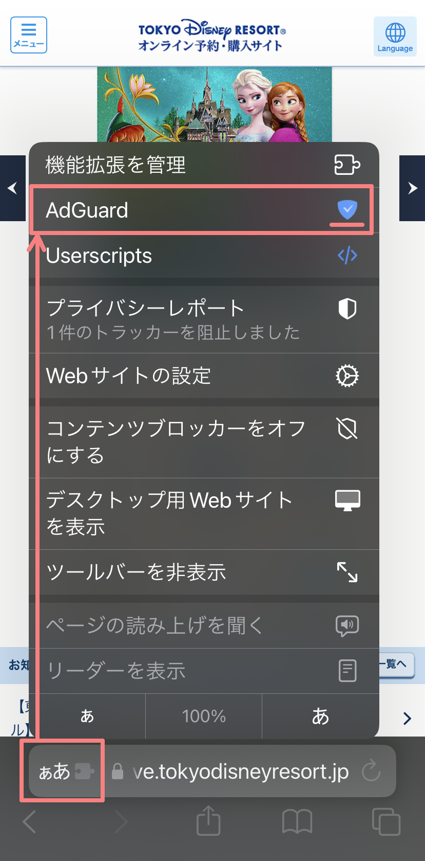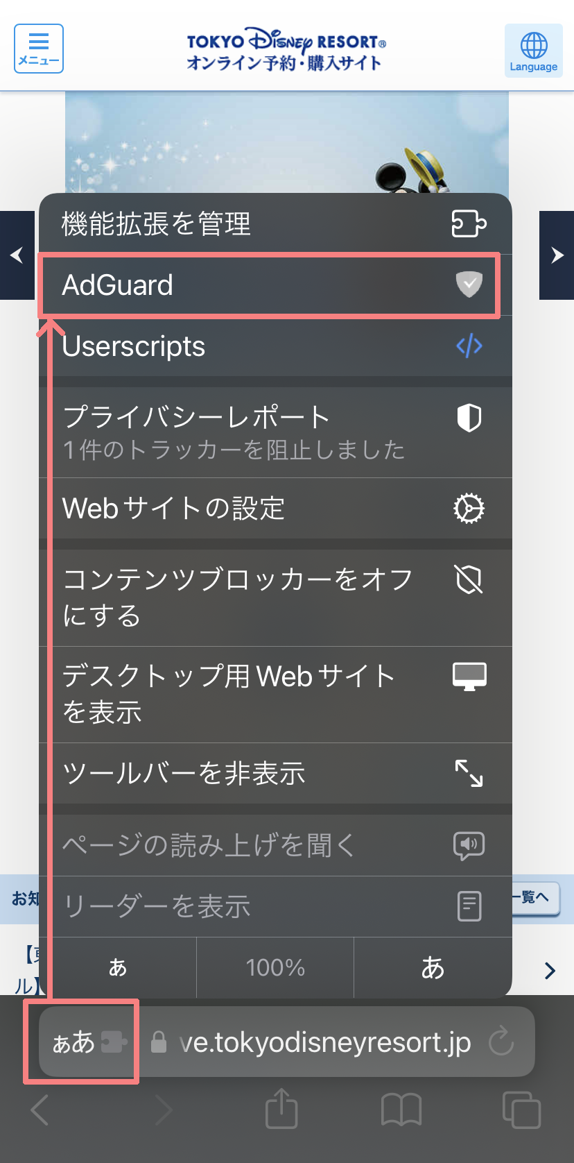 このページでは、「東京ディズニーリゾート オンライン予約・購入サイト」で「約2時間での待合室への強制移動問題(*)」を抑止するためだけを目的にした、最小限のブロック設定として手順を記載しています